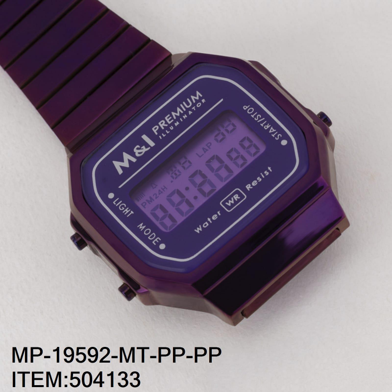 Vista rápida -50% -50% $124.00 $248.00 Color ACERO/AMARILLO ACERO/BLANCO ACERO/PLATA Reloj Digital con Extensible de Metal en Color Púrpura