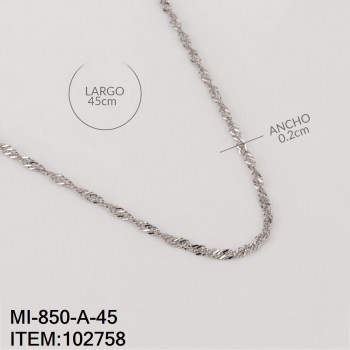 Vista rápida -50% -50% $80.00 $160.00 Talla 5 6 7 8 9 10 Cadena de Dama Modelo Semi Torsal de Acero Medidas 45cm de Largo y 0.2cm de Ancho