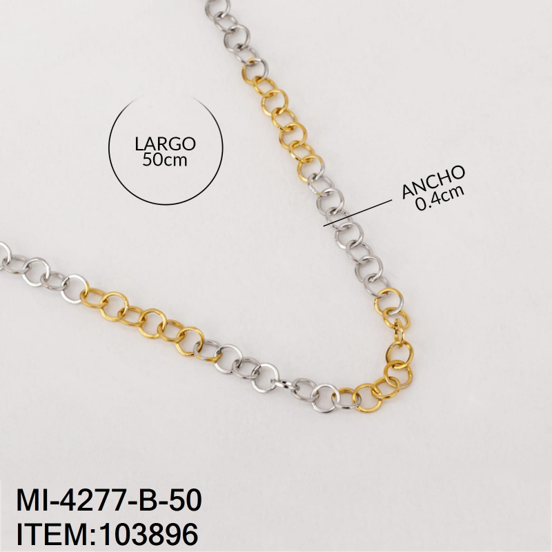 Vista rápida -50% -50% $20.20 $40.40 Cadena de Dama Modelo Rolo de Acero Color Bitono Medidas 50CM de Largo y 3MM de Ancho