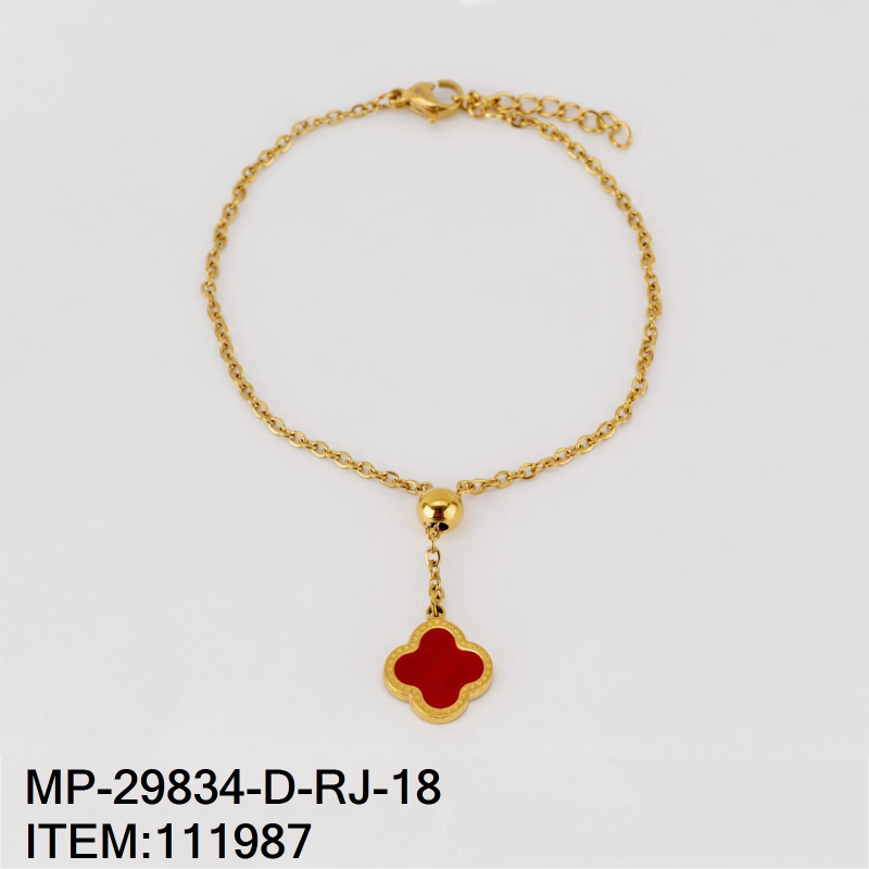 Vista rápida -50% -50% $84.00 $168.00 Pulsera de Dama con Dije de Trebol en Color Rojo de Acero Inoxidable Dorado Medida 18CM
