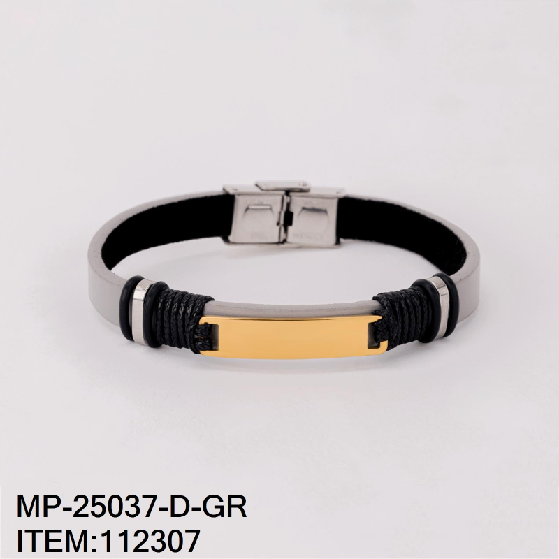 Vista rápida -50% -50% $51.00 $102.00 Pulsera de Caballero en Piel Color Gris con Placa de Acero Dorado Línea Económica