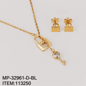 Vista rápida -50% -50% $35.10 $70.20 Juego de Collar y Aretes con Diseño de Candado y Llave con Piedras Blancas en Acero Dorado