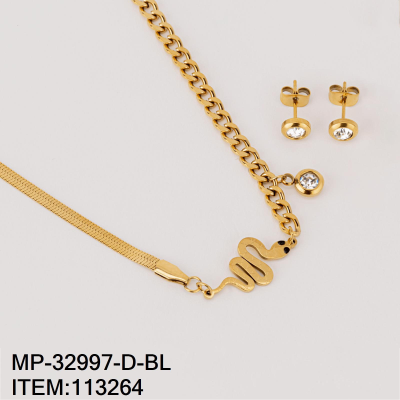 Vista rápida -50% -50% $134.40 $268.80 Juego de Collar y Aretes con Diseño de Serpiente con Equis en Acero Dorado