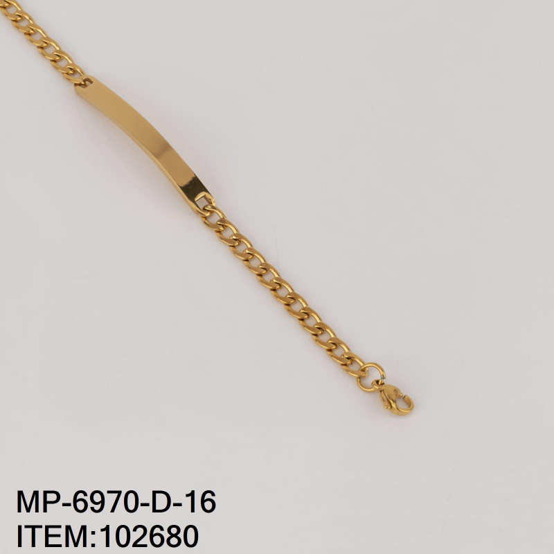 Vista rápida -50% -50% $26.40 $52.80 Pulsera de Placa (Placa 4.5 cm de Largo y 0.5cm de Ancho) Eslabon Barbada en Acero Inoxidable Dorado Medida 16cm de Largo