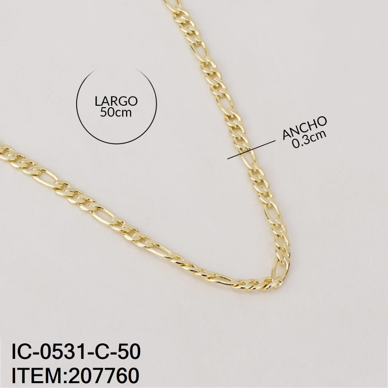 Vista rápida -50% -50% $136.00 $272.00 Cadena de Dama Basica Figaro 3x1 en Chapa 14K Medidas 50cm de Largo y 0.3cm de Ancho