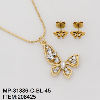 Vista rápida -50% -50% $75.60 $151.20 Juego de Cadena Dije y Aretes con Diseño de Mariposas con Piedras Blancas en Chapa 14k Medida 45cm