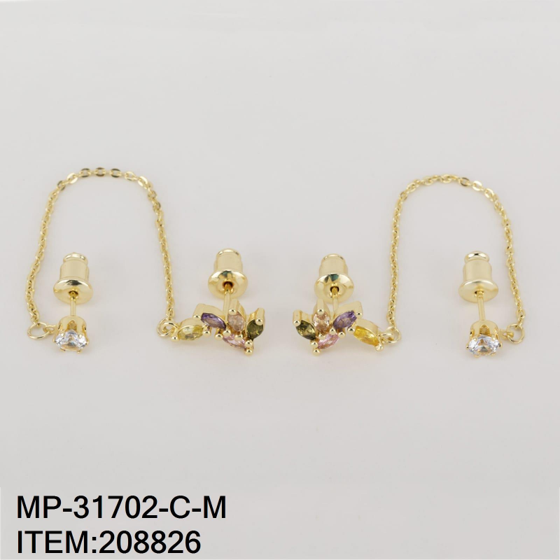 Vista rápida -50% -50% $131.00 $262.00 Arete Trepador con Diseño de Petalos con Piedras Multicolor en Chapa 14k
