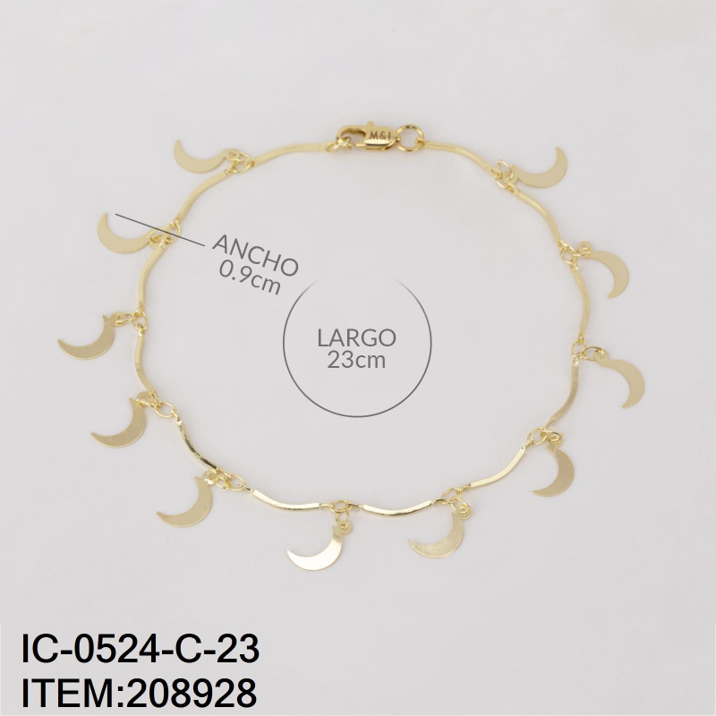 Vista rápida -50% -50% $77.40 $154.80 Tobillera de Dama con Dijes de Lunas en Chapa 14K Medida 23CM de Largo y 0.1CM de Ancho