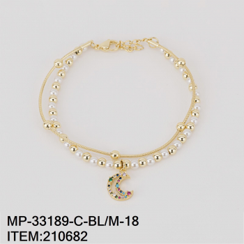 Vista rápida -50% -50% $116.00 $232.00 Pulsera de Dama con Diseño de Cola de Rata con Bolitas y Dije de Media Luna con Piedras Multicolor en Chapa 14k Medida 18cm de Largo