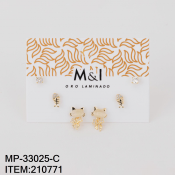 Vista rápida -50% -50% $82.40 $164.80 Vista rápida -50% -50% $92.40 $184.80 Arete Broquel con Juego de 3 Pares con Diseño de Gato con Moño Blanco y Pescados con Piedras Blancas en Chapa 14k