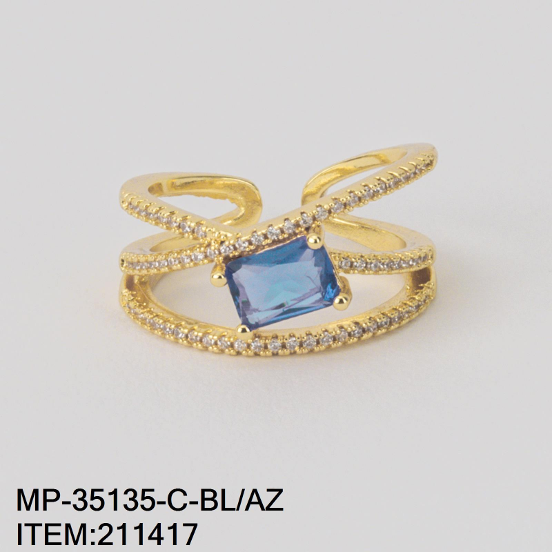 Vista rápida -50% -50% $234.40 $468.80 Anillo con Diseño de Piedras Blancas y Piedra Rectangular Azul en Chapa 14K Sistema Ajustable