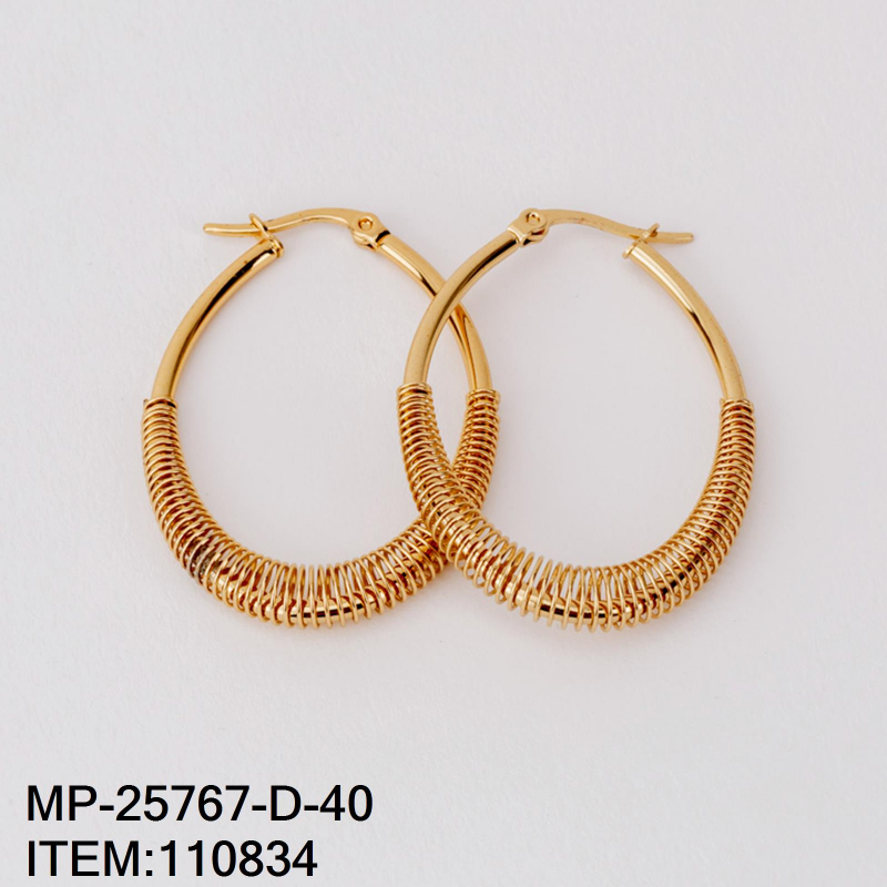 Vista rápida -50% -50% $37.00 $74.00 Arete Arracada Ovalada con Diseño de Espiral en Acero Inoxidable 316L Dorado Medida 40MM